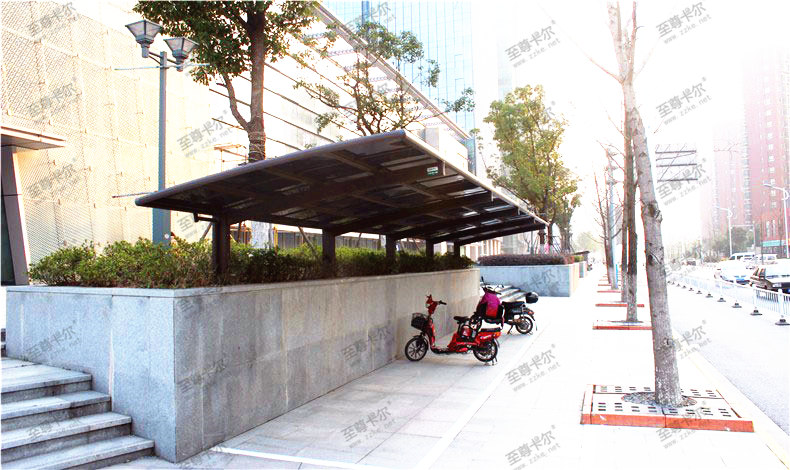 昌輝大廈自行車車棚的安裝也大大提高了大廈內部員工的滿意度,平常上下班的電動車自行車都可以在至尊卡爾正宗鋁合金自行車車棚中得到很好的保護,不會再發生陽光暴曬導致的黃變、霉變、透光不佳等問題。