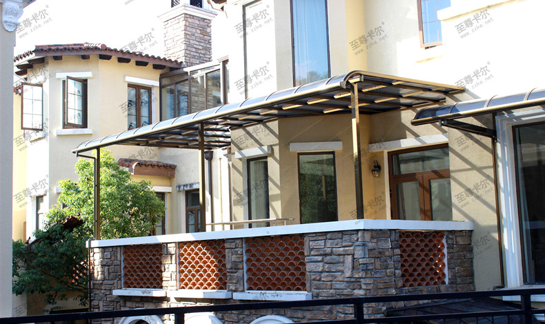 這些露臺(tái)雨棚圖片的頂棚采用德國拜耳原料做的聚碳酸酯板,骨架使用采用6063-T5的高強(qiáng)度鋁合金,抗紫外線、隔熱防塵、自動(dòng)清洗、防霜、防雪、防雨、可承受35CM厚積雪、可承受最大42m/s風(fēng)力等特點(diǎn)。