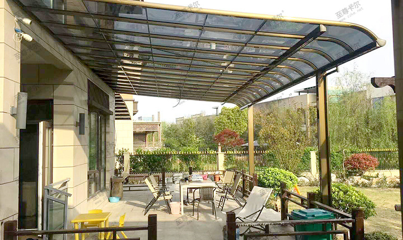 至尊卡爾耐力板雨棚的優點是強度高,可達到普通玻璃的300倍,鋼化玻璃的2倍,被稱為透明鋼板,強度可想而知。而且內含光觸媒,可以通過陽光和雨水自動清潔頂棚外層,比玻璃雨棚更容易清潔打理。