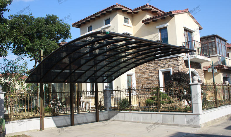例如,這些家用停車棚圖片,看上去每種都風格迥異,但其實材質都是一樣的。全部采用鋁合金+耐力板這種材質。