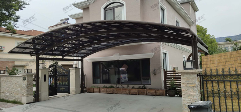 第二就是,看材質,一個廠家主打的材質,也能看出這個廠家是否良心、專業。例如之前應用廣泛的鋼結構+膜布車棚,或者是不銹鋼管+陽光板,這種之所以在國內流行,完全是因為沒有更好的選擇。但是現在,至尊卡爾發現了更優質、更適合的材質:鋁合金+耐力板。