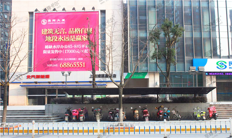 昌輝大廈自行車車棚工程 昌輝大廈位于嘉定南翔鎮(zhèn),東臨槎溪路、西臨古漪園路、北臨銀翔路、南臨翔二河